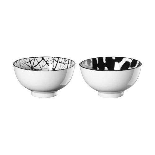 Maori Set Of 2 Bowls D.11 Cm, H.6 Cm, Black Blurred And Grid