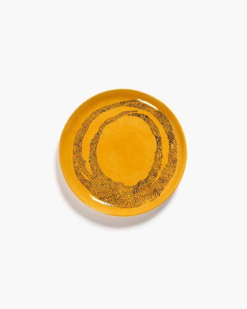 Plate Feast M L22,5 X W22,5 X H2 Cm Sunny Yellow Swirl-Dots Black