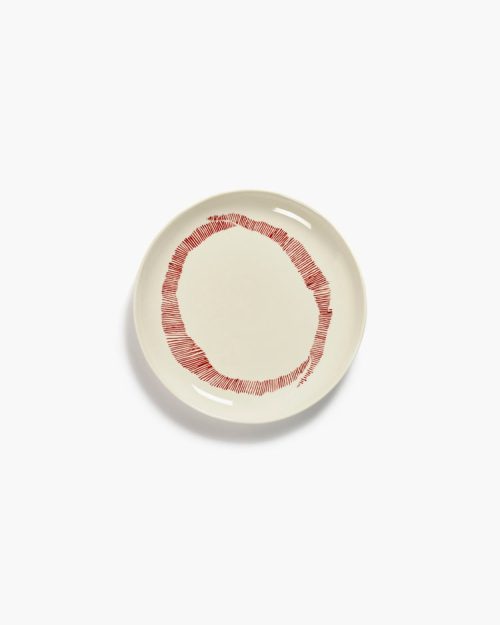 PLATE FEAST S L19 x W19 x H2 CM WHITE SWIRL-STRIPES RED