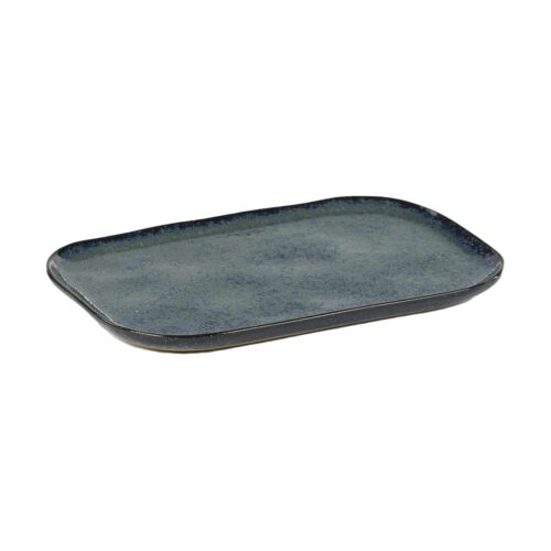 Plate Rectangular Merci N°2 L 23X15 H1,4 Blue/Grey