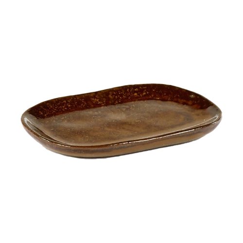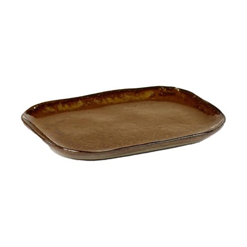 Plate Rectangular Merci N°2 23X15 H1,4 Ocre/Brown