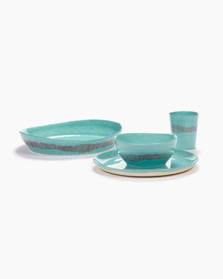 Serving Plate Feast S L30 X W29,5 X H6 Cm Azure Swirl-Stripes Red