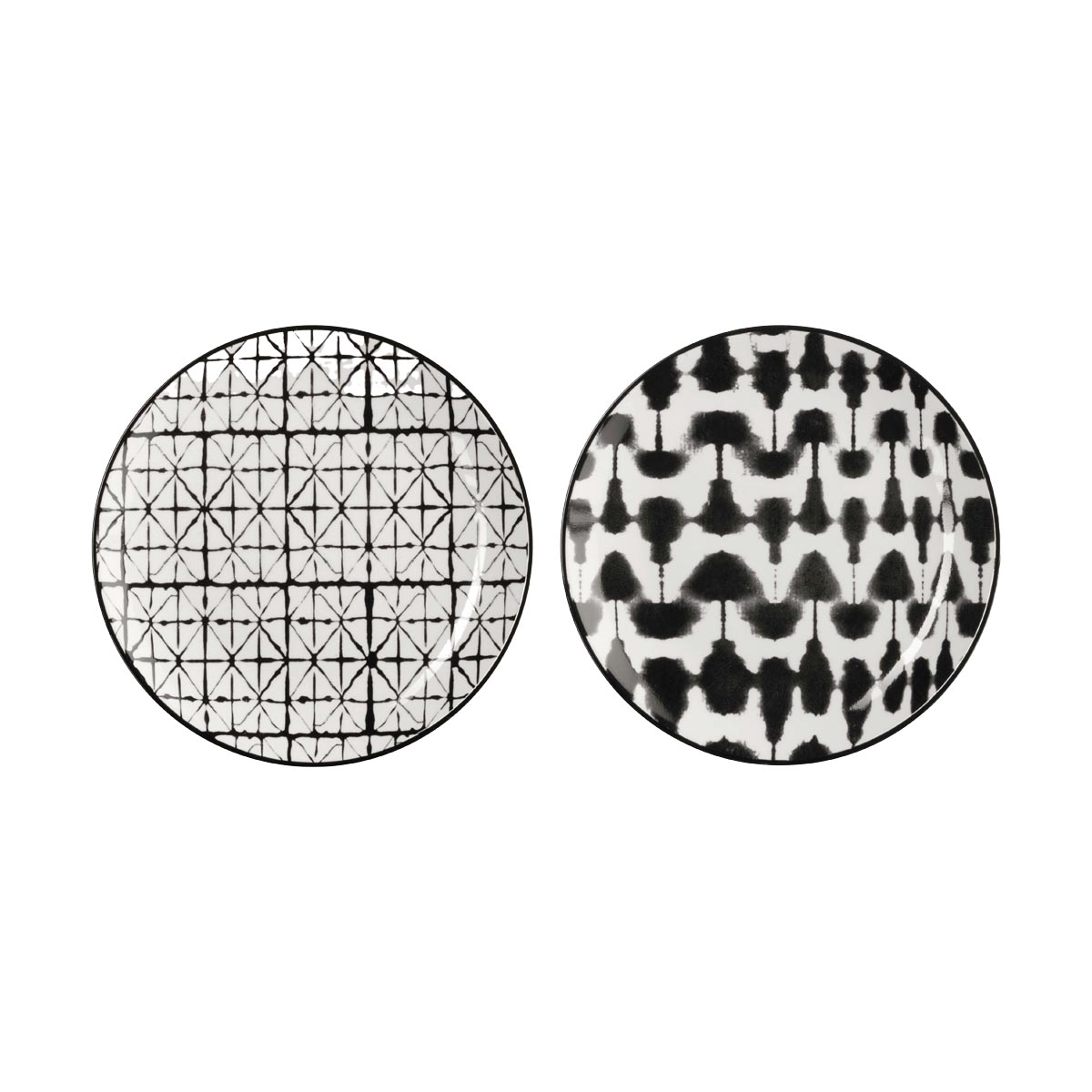 Maori Set Of 2 Plates D.20,3 Cm, Black Blurred And Grid